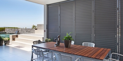 Featuring a 60mm bolt, and a sleek new slide action and push-lock system. Shuterstyle Shutters don't compromise on neither beauty nor functionality. Our shutters are made from slim yet robust alumninium, are suitable for both indoors and outdoors. These sylish shutters offer modular track options, a new -to-market light-blocking system and seamless lines.